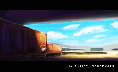 Here's the sketch for last night's Half-life Grudemath, which covered the first leg of Blue Shift. More specifically, this is my interpretation of the trainyard where you rescue Dr. Rosenberg. No caricatures or funny business this time around -- just a straight-up environment speedpaint.
